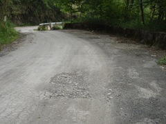 一連串的陡下坡,又是碎石路,曾經一度前輪碟煞散發出燒焦味,趕快停車讓它休息!